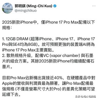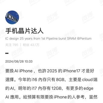 目前有剧透表明,iPhone 17系列中最少在max机型上运存会增加至12GB,届时才能享受到完全体的AI功能。